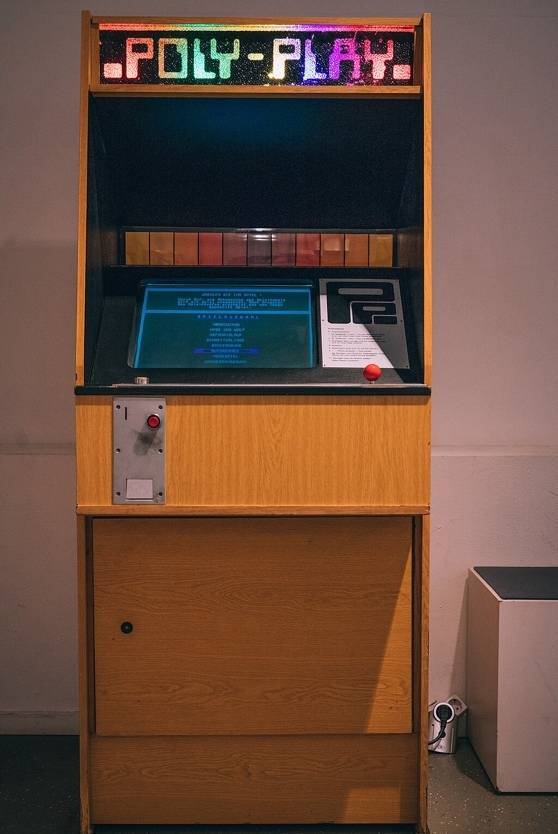 本次“冷战游戏”展览中还有一台珍贵的投币游戏机,即“Poly-Play”——这是唯一一款源自民主德国的街机。Poly-Play由民主德国公司VEB Polytechnik在1985年开发,生产了共约2000台,每台机器售价22000马克,每款游戏售价50芬尼。Poly-Play提供七款不同的简单游戏,包括兔与狼、猎鹿人、速降滑雪、蝴蝶收集游戏、记忆游戏、射击游戏和赛车游戏。这些游戏概念大都基于当时已经在日本、美国和西欧出现的电子游戏。例如“兔与狼”就是对南梦宫公司1980年发行的《吃豆人》(Pac-Man)的改编。当时,Poly-Play主要出现在民主德国的工会度假屋、青年旅社和青年俱乐部里。