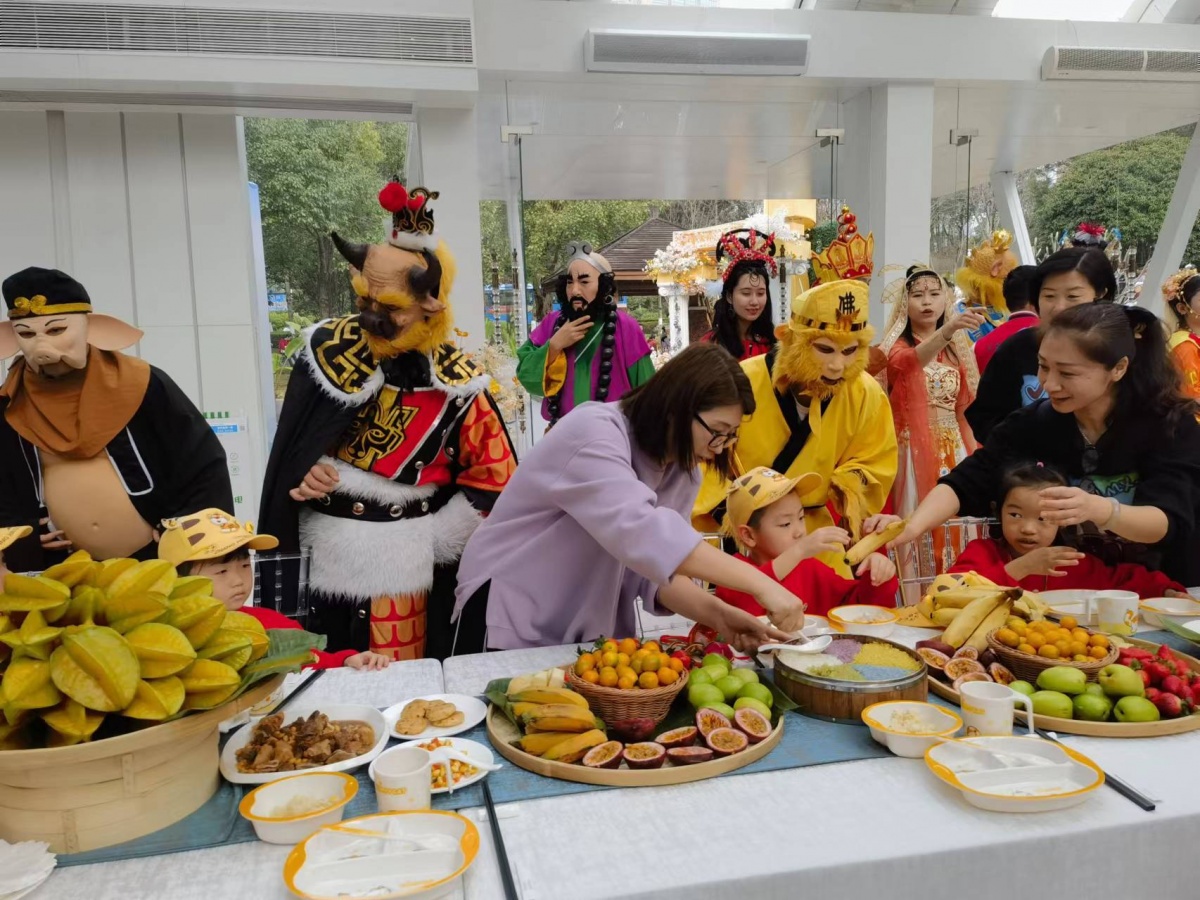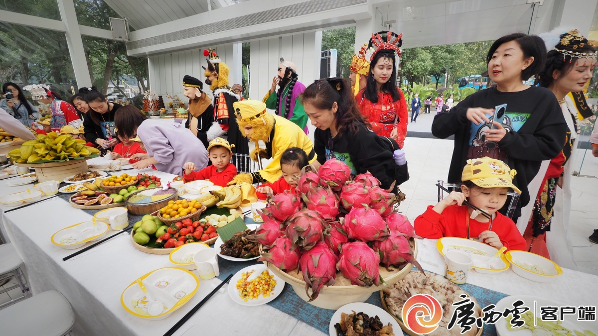 孙悟空的古灵精怪、猪八戒的憨态可掬、玉兔精的俏丽多姿……一个个耳熟能详的西游人物,与小朋友们一起“入乡随俗”,跳起了广西“科目三”,其乐融融。