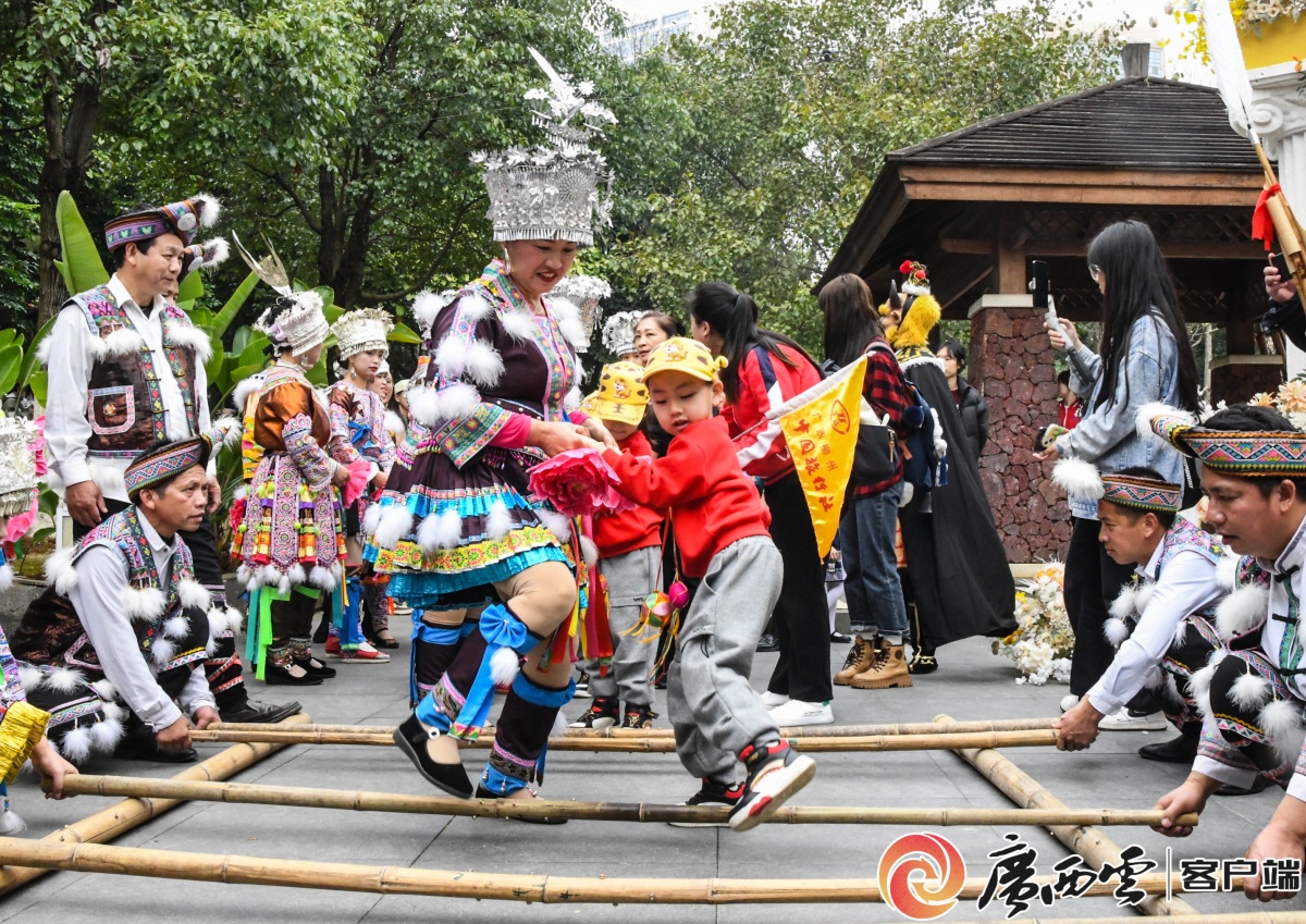 在芦笙歌舞的指引下,最炫民族风的“小砂糖橘”牵手“小东北虎”感受多姿多彩的民俗文化。