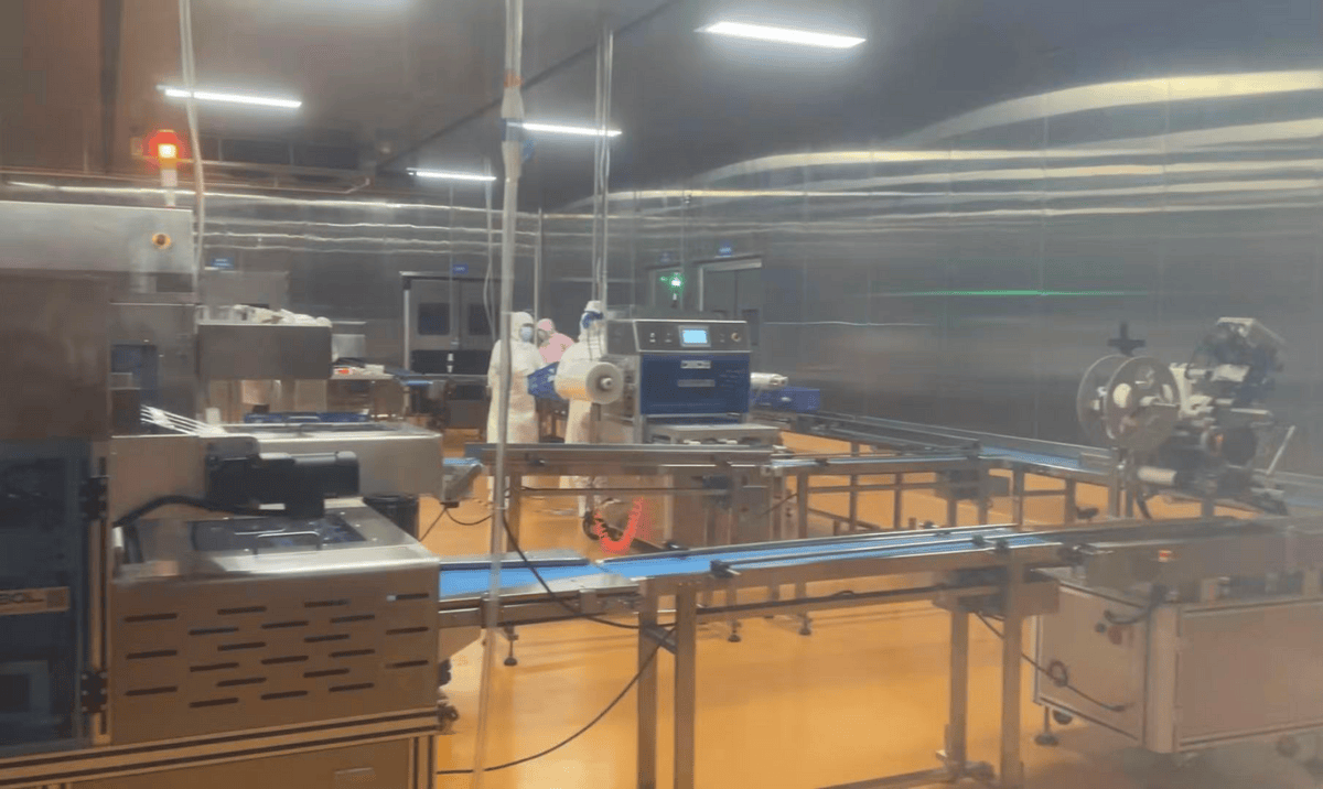 加工车间占地 5000 平方米,冷藏库 500 平方米,配备着三文鱼自动脱泥机、进口马瑞奥切片机、X-ray 光检测机,年加工能力最高可达 3600 吨。这里加工的三文鱼,来自挪威、智利等全球主要产地,最终流向西南、华中、华东的超市与餐厅。