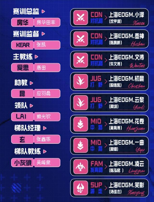 EDGM,教练组补充了张凯,选手引进了壶神,云黎和花卷,AG的元素是越来越多了。下个赛季的首发阵容不好猜,大家都有竞争力,个人预测是小泽,云黎,花卷,凌云和笑影。如果成绩不好,也有可能出现花卷转辅助的情况,个人预测还是B组水平。