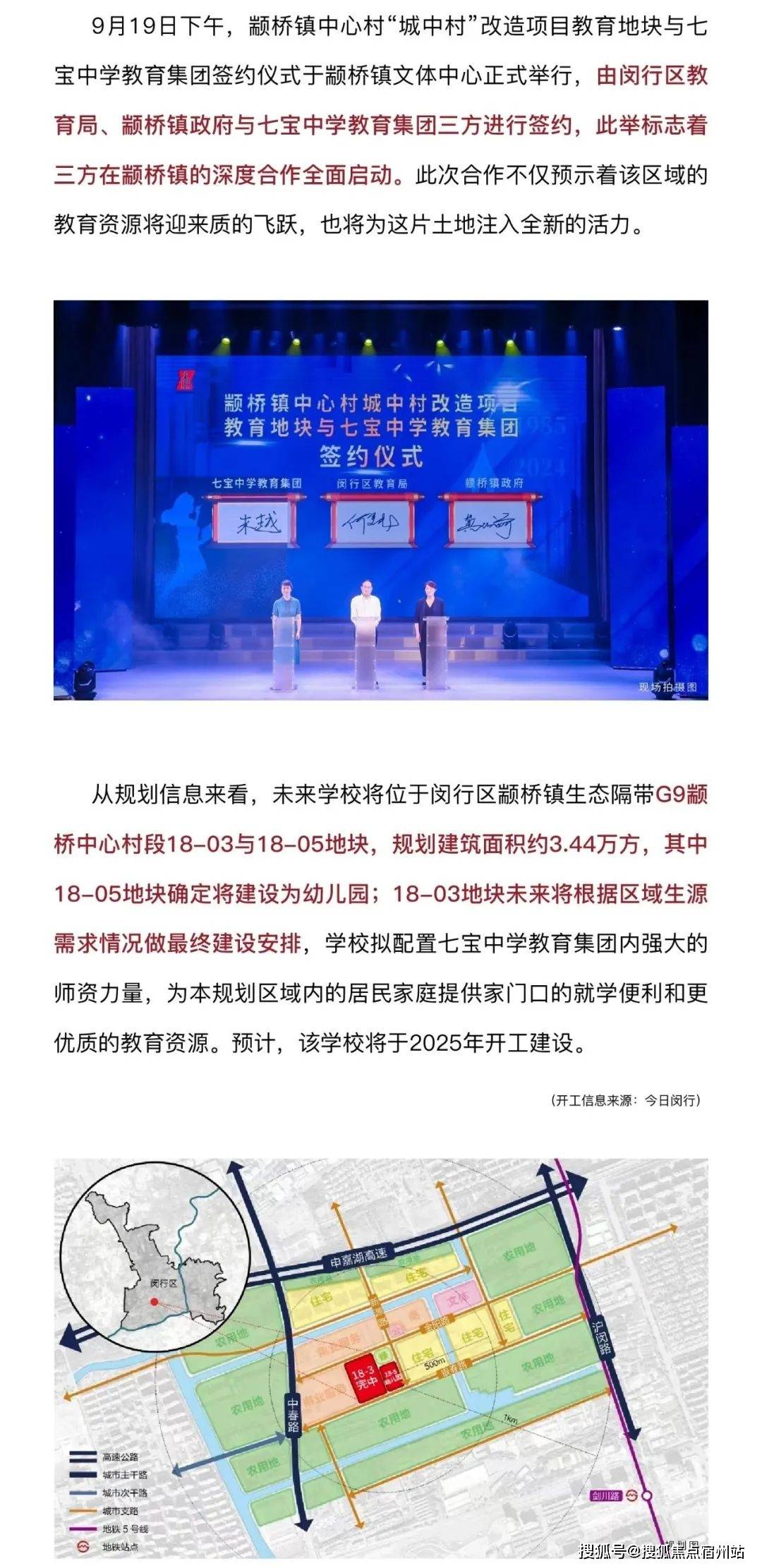 首先,教育是大家更关心的,七宝中学教育集团入驻,期待值拉满!七宝中学教育集团目前已明确入驻18-03、18-05地块,将建设一所幼儿园及初中,预计2025年开工(来源今日闵行)