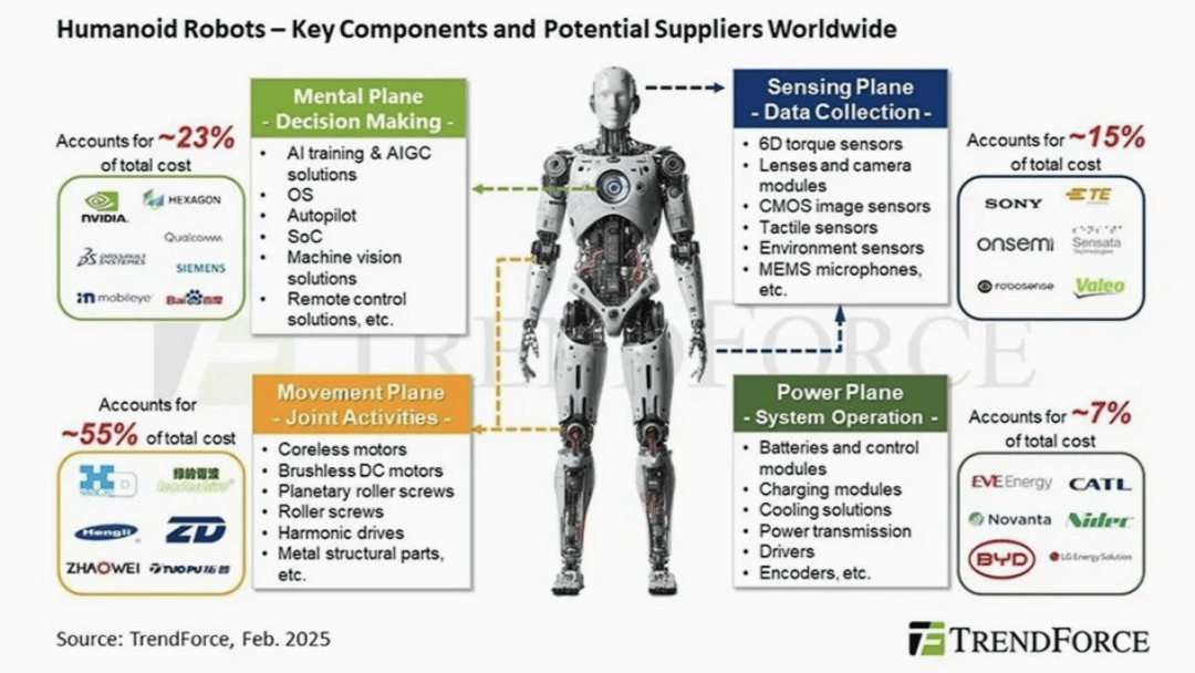 而跨界玩家的入局逻辑,也进一步强化了这一范式:比如小鹏(XPENG)和小米(Xiaomi)选择进入人形机器人领域,其最大优势就是他们在汽车、手机等领域已经积累的强大的供应链管理能力和规模化生产经验。小鹏CEO何小鹏多次强调,其目标是在2026年左右实现人形机器人的量产,并首先应用于小鹏自己的汽车制造工厂,在最熟悉的场景中进行应用和迭代。